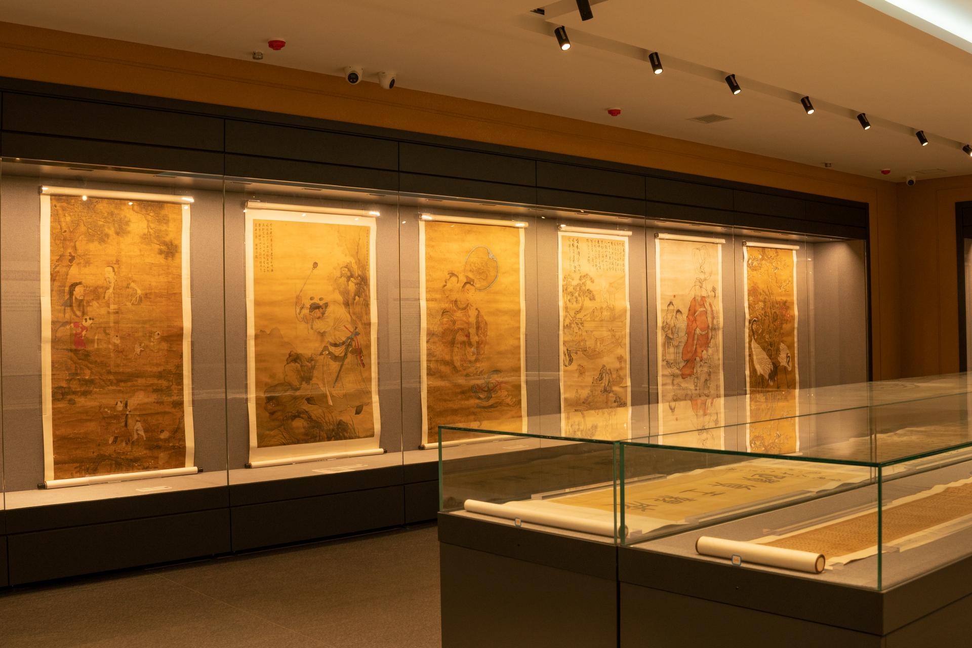 《馆藏书画精品展》展出的书画作品35件,包括唐代《敦煌石室写经长卷》、明代《陆治人物图轴》、清代《马荃花卉长卷》、《成亲王手卷》、《仿唐寅钟馗打鬼图轴》、《苏六朋东坡游赤壁图轴》、《王翚山水图轴》、《莲溪东方朔献寿图轴》等等精美作品,这些书画多来自钱基博、张舜徽等学术名家及王爱施等校友捐赠。