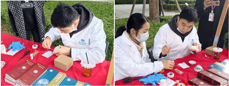 此外,来自湖北省博物馆文保中心的张济夏老师与华中师范大学博物馆王怡文老师,在工作台前进行了沉浸式实操演示,吸引不少观众驻足。更有社区居民携带自家瓷器前来咨询修复,互动环节生动有趣,拉近了公众与文物修复工作的距离,令人深切感受到“化残缺为完美”背后所付出的智慧与艰辛。