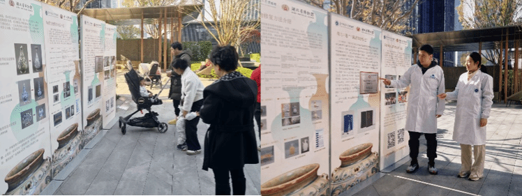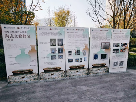 现场展览兼顾静观与动赏。科普展板系统介绍了陶瓷文物修复的历史与现状,以图文并茂的形式,系统梳理陶瓷文物修复的发展历程,清晰解读残缺文物从出土破碎到重焕光彩的科学原理,全面展现修复工作的艰辛与专业。