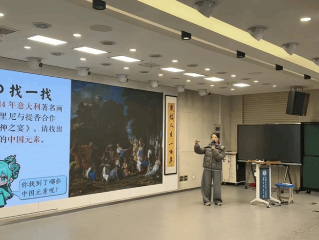 课程以“寻找中国元素”互动环节拉开序幕,同学们在画作《诸神之宴》中寻找中国瓷器相关元素,自然衔接至中国瓷器的核心特点、发展脉络、制作工艺等核心内容,有效激发了同学们的探究兴趣。