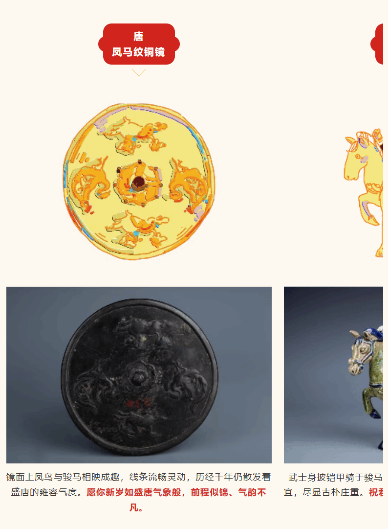 此次红包封面,精选馆内四件蕴含“马”之神韵与吉祥寓意的珍贵文物,将千年文物的厚重底蕴与新春的喜庆氛围巧妙融合,让每一份红包都成为传递文化与祝福的载体。