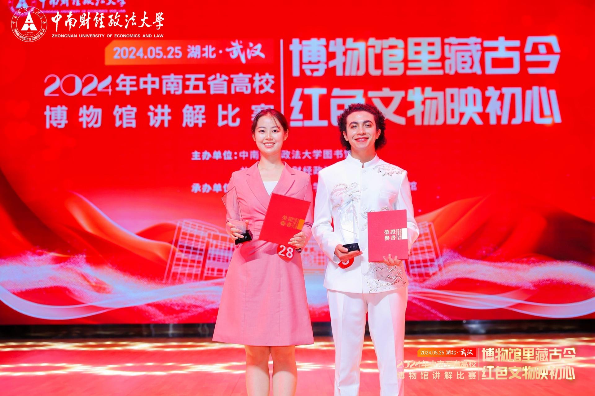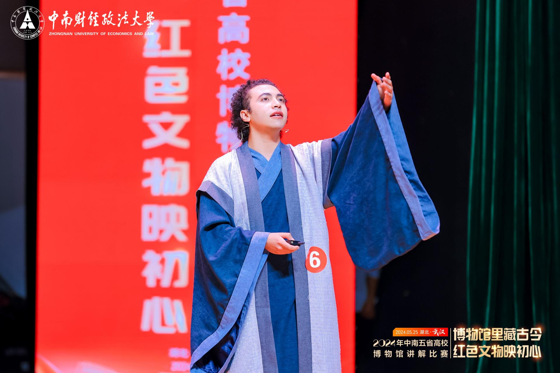 大赛自2024年4月启动后,经过初赛、复赛的严格选拔,最终的决赛赛场上,来自中南五省26所高校的30名选手同台竞技,为观众呈现了一场知识与胆识的讲解盛宴。决赛当天,经过自选主题讲解与即兴讲解两轮比赛的激烈角逐,我校选手杨晨与KHALED METWALLY ABDELHAY MOHAMED(埃及)最终均获二等奖的好成绩。